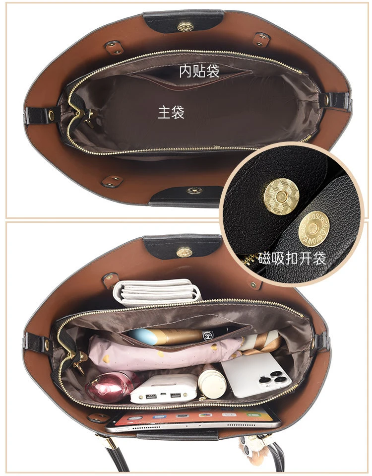 2025 New Large PU Tote Bag for Women Soft Multi-Pocket Zipper Handbag Urban Minimalist Work Purse (Black/Cocoa Brown)