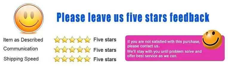 1.If you are satisfied with your order, please leave us all 5 stars including Item as Described. Communication and Shipping Speed.